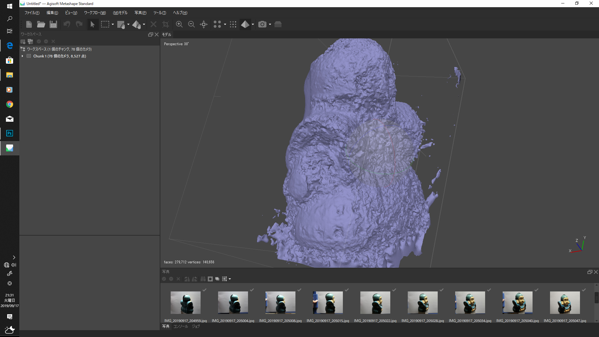 Agisoft Metashape(旧PhotoScan)がバージョンアップしていたので、比較的難しいツルツル系の福助の取り込みをしてみました。